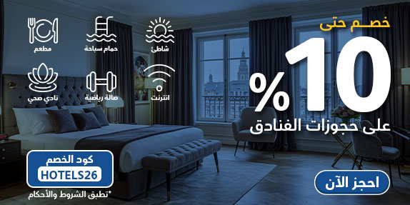 استمتع بخصم 15% على حجوزات الفنادق و10% على حجوزات الطيران